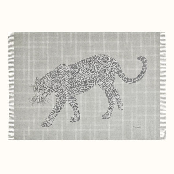 Hermes 2019 Leosquare Gris/Blanc Cashmere by Robert Dallet Fringed Throw Blanket