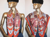 Marvelous scarf designed by Françoise de la Perriere in 1988. This one is a reissue, sublime palette too and researched with its blanc matte overlay (painting effect on some parts only.. sublime!)!