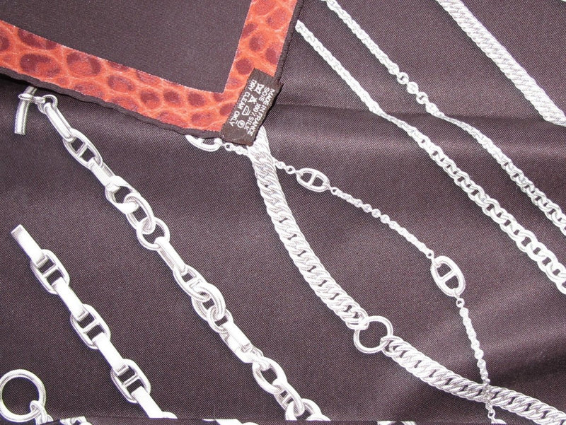 Researched vintage silk 70cm scarf/foulard Made in France by Hermes, called Chaines et Gourmettes