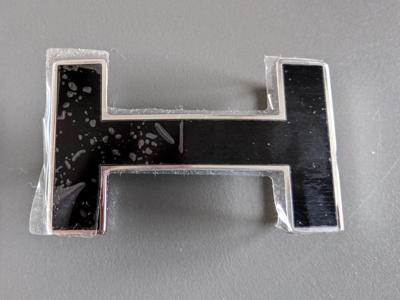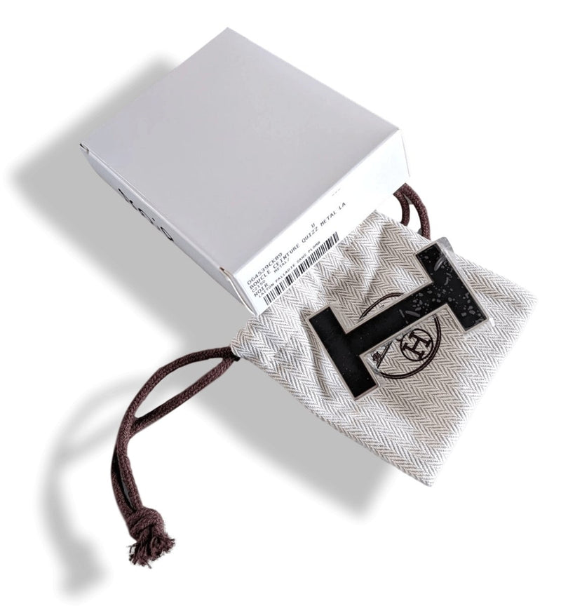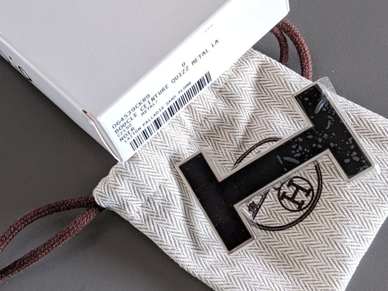 Lovely buckle of belt Made in France by Hermès in its collection Belt Kits, for a strap of 32mm, model H QUIZZ NOIR for woman and man, in Lacquered enamel!