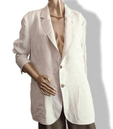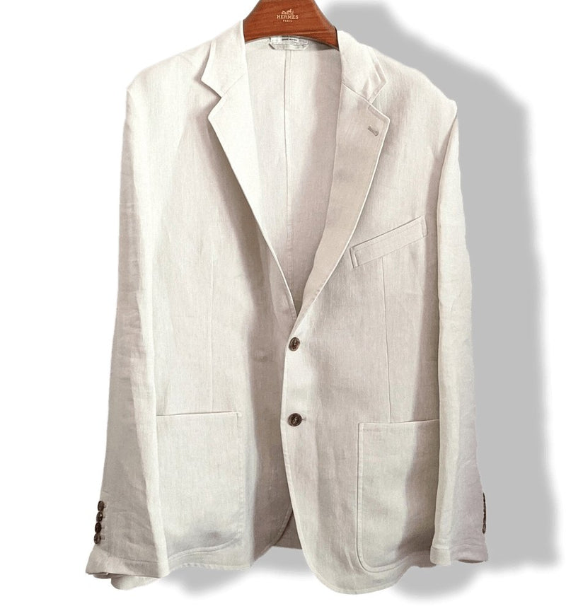 A Men's jacket you will adore : Lihtweight Hermes jacket for this summer you will use in many occasions, to travel, during a beach parties, for shopping being relax and elegant! Awesome looking, great material witch is a mixing of linen and silk, Made in Italy! It has some pockets inside, very usefll, also for your small notebook or iphone! Please check measurments.
