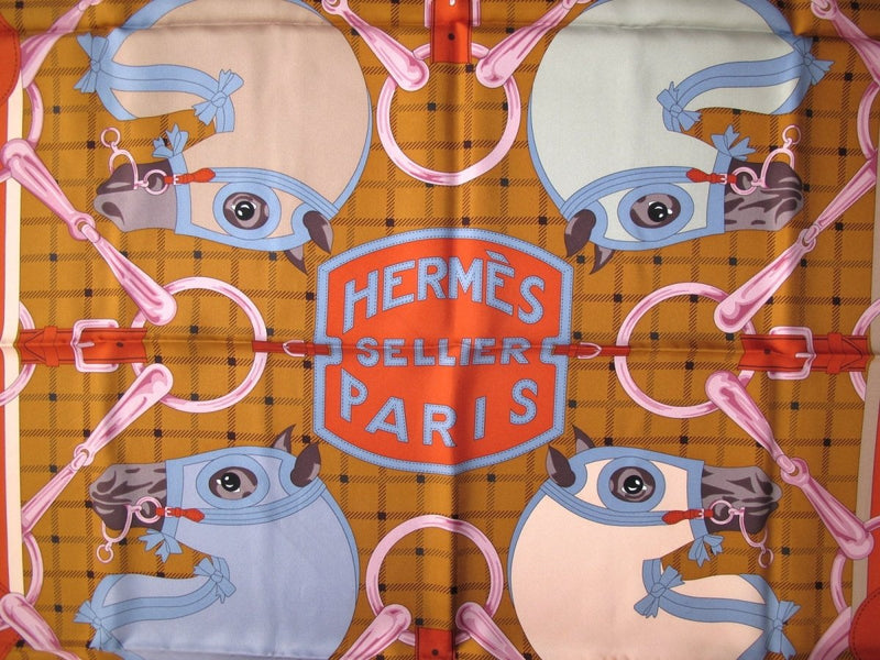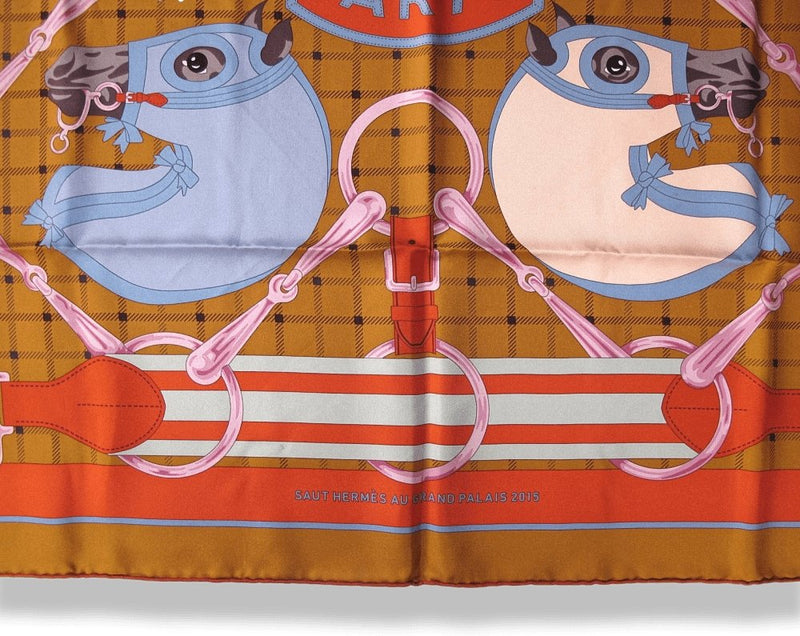 Special Hermes Twill silk Carre, Model Tatersale designed by Henri D'Origny in 1980 and offered here is the special limited issue Saut au Grand Palais 2015